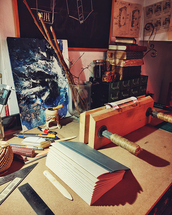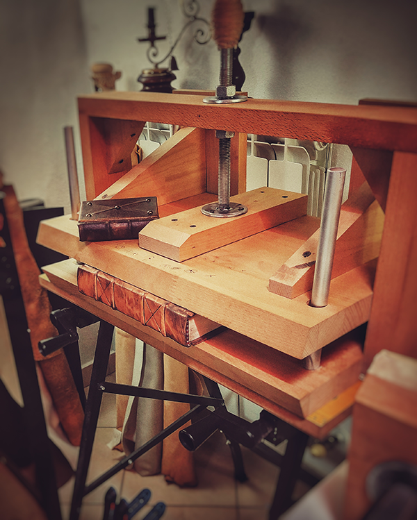 Excluding research and development (done only once), each book is printed and hand-bound on demand, requiring at least two days of work. This is mainly because the book undergoes at least two long “resting” phases (up to 8 hours each): one in the press to take its initial form, and one to bond perfectly with the cover.