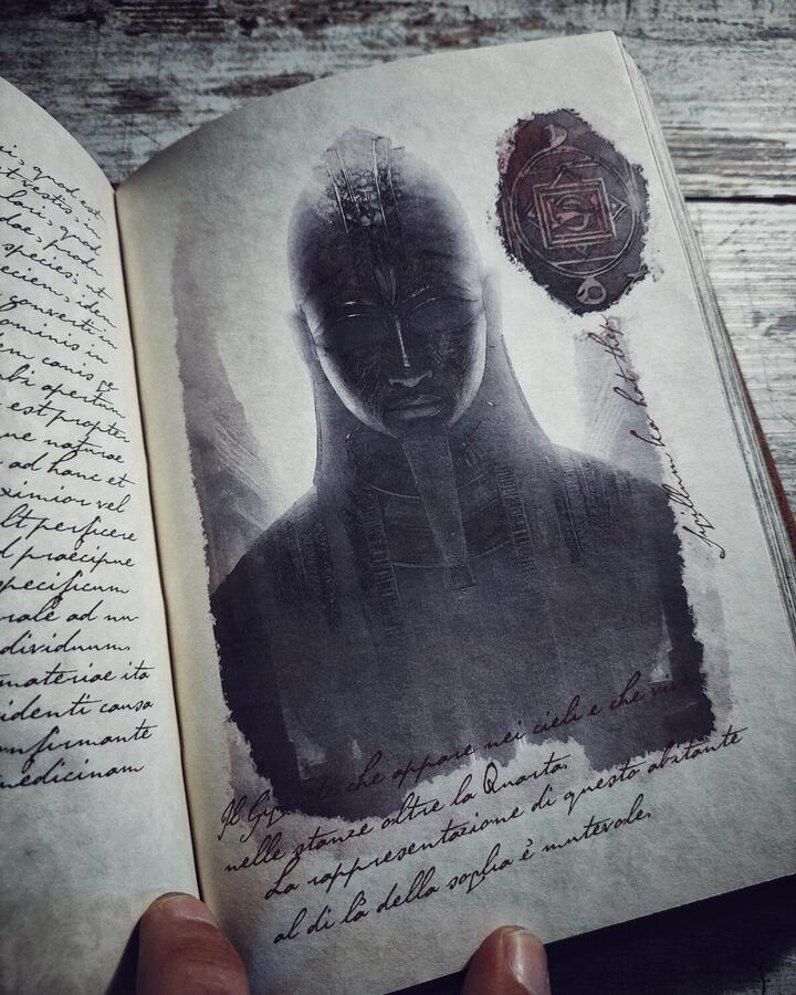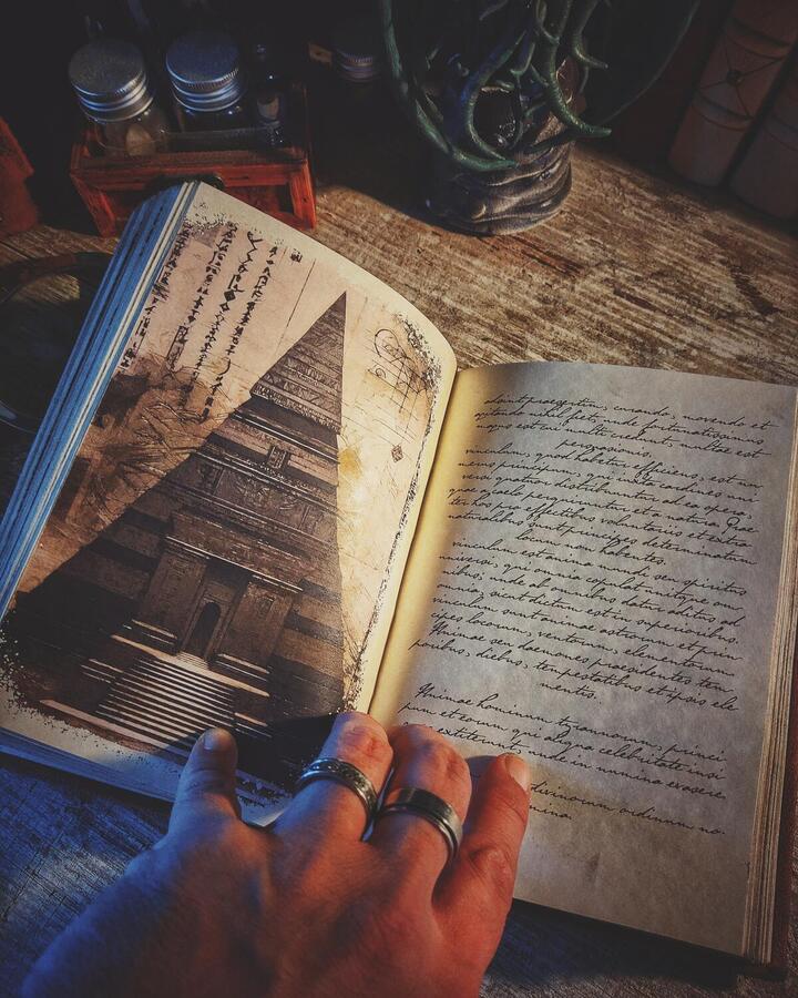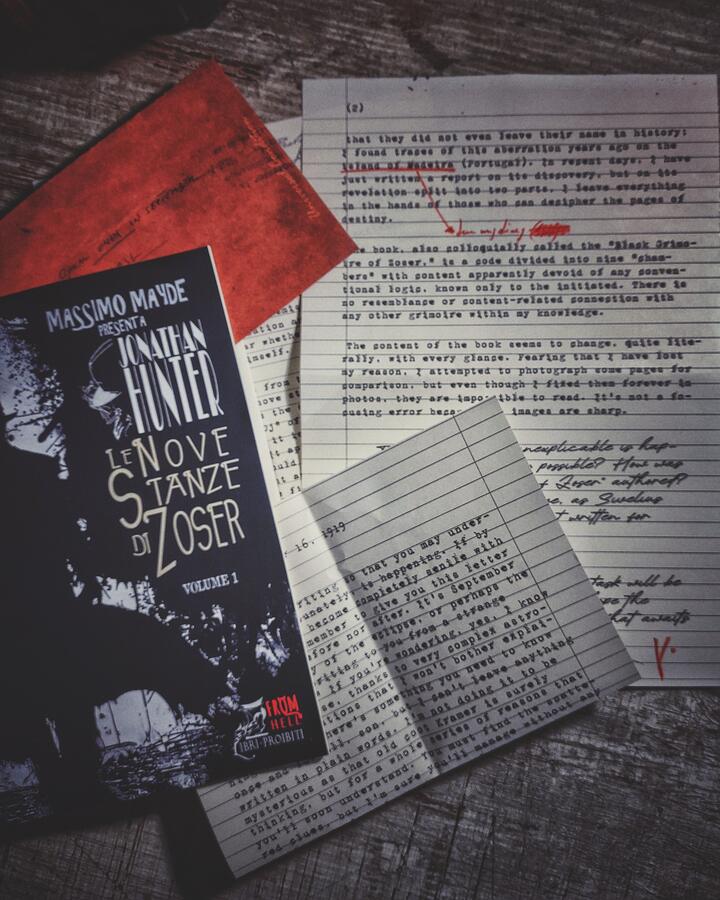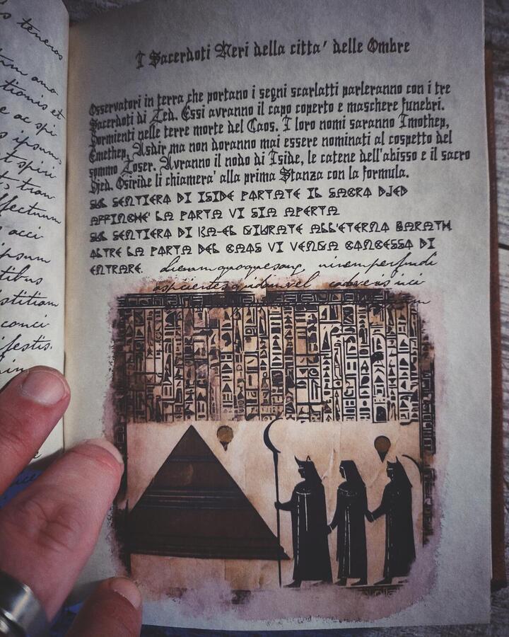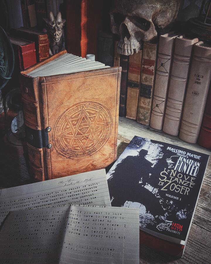 Hey! Di questo romanzo abbiamo creato anche il libro maledetto che compare all'interno della saga, le vere Nove Stanze di Zoser. Lo trovi qui sul nostro sito, acquistabile nella versione rilegata a mano.